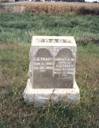 This is a photo of the grave stone in Bristow, Iowa for Alexander Dorman Tracy and Horatia Menina (Irish) Tracy: