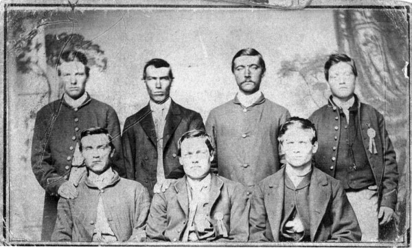 This is another photo of Sydney Augustus Russell in his civil war uniform. He is standing on the extreme left: